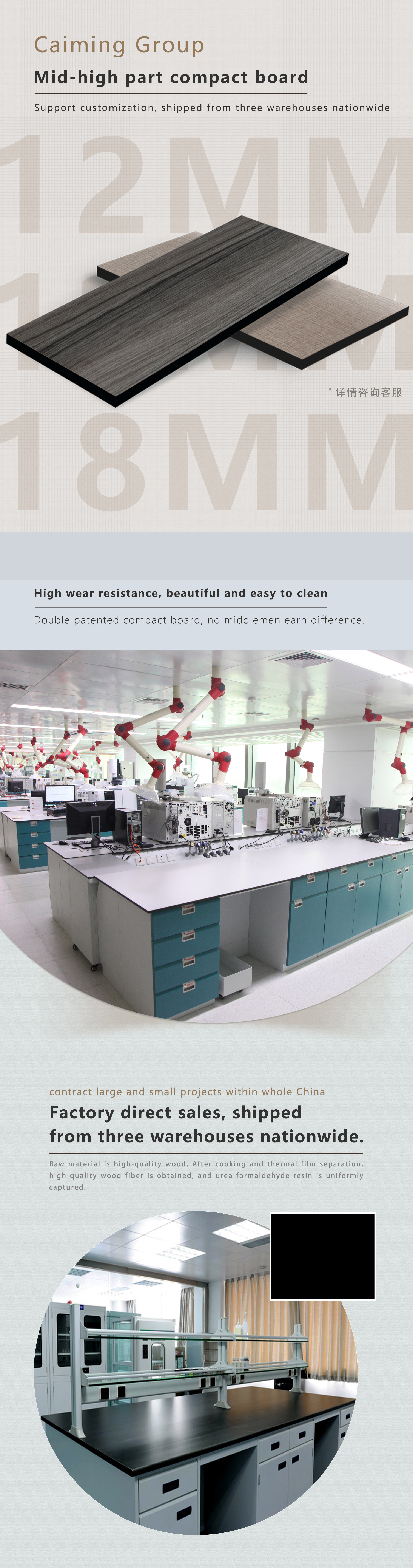 The physical and chemical board has excellent impact resistance, water resistance, moisture resistance, drug resistance, heat resistance and wear resistance, and its weather resistance is also excellent. Sunlight will not cause discoloration or discoloration. In addition, the product is difficult to be stained with dirt, easy to clean and easy to maintain. The service life of the product can last for a long time. The impact absorption force of the physical and chemical plate and the special manufacturing process make it have a certain seismic resistance.